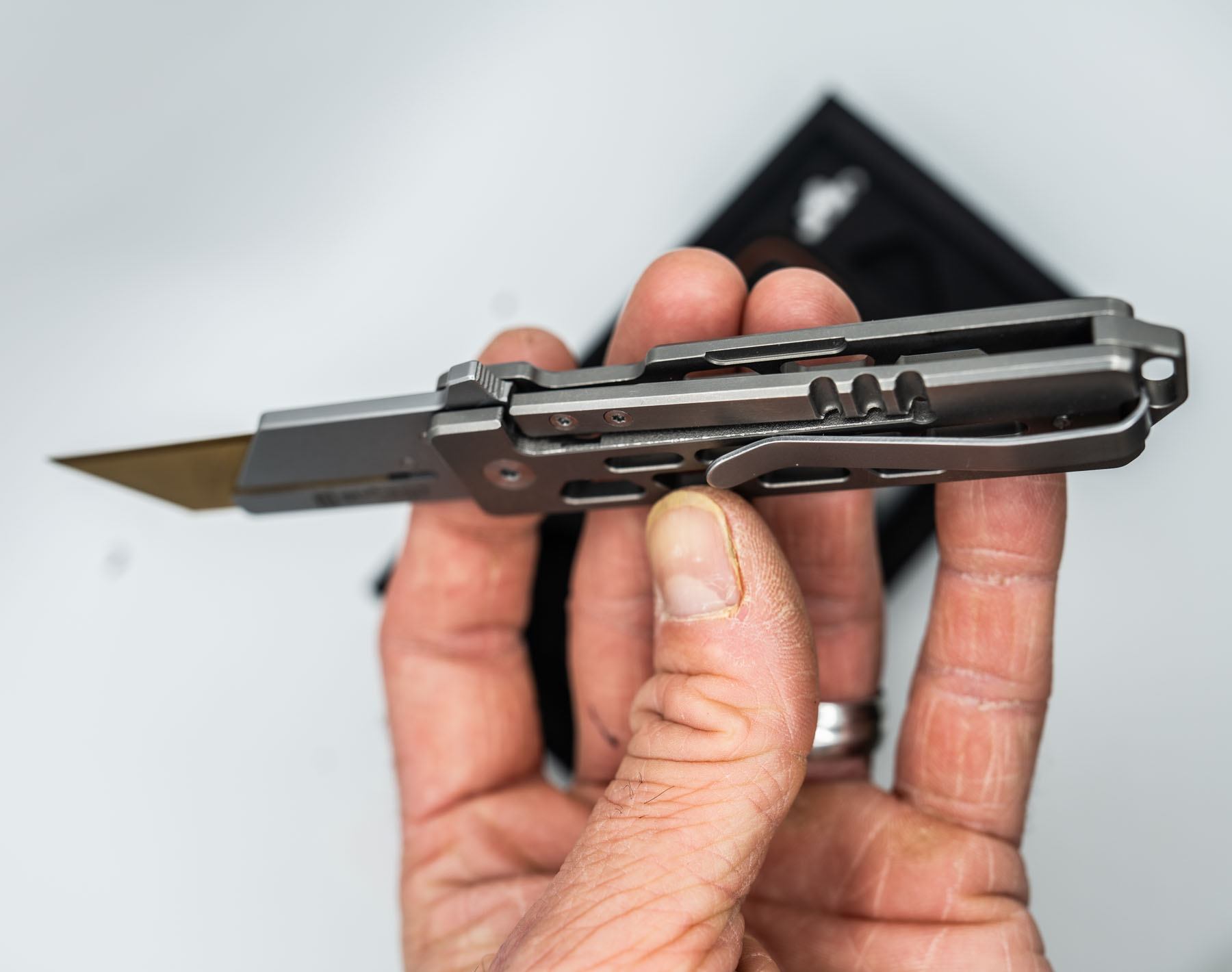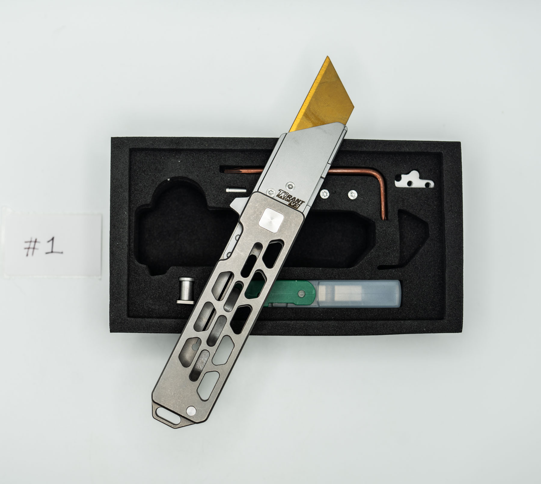 ITEM #1 — TiRant RAZOR V3 Dual-Side Skeleton Milled Edition (Stonewashed 6AL-4V Ti + Box Kit) 9/10 Minor Blem *See Photos — Only One Available