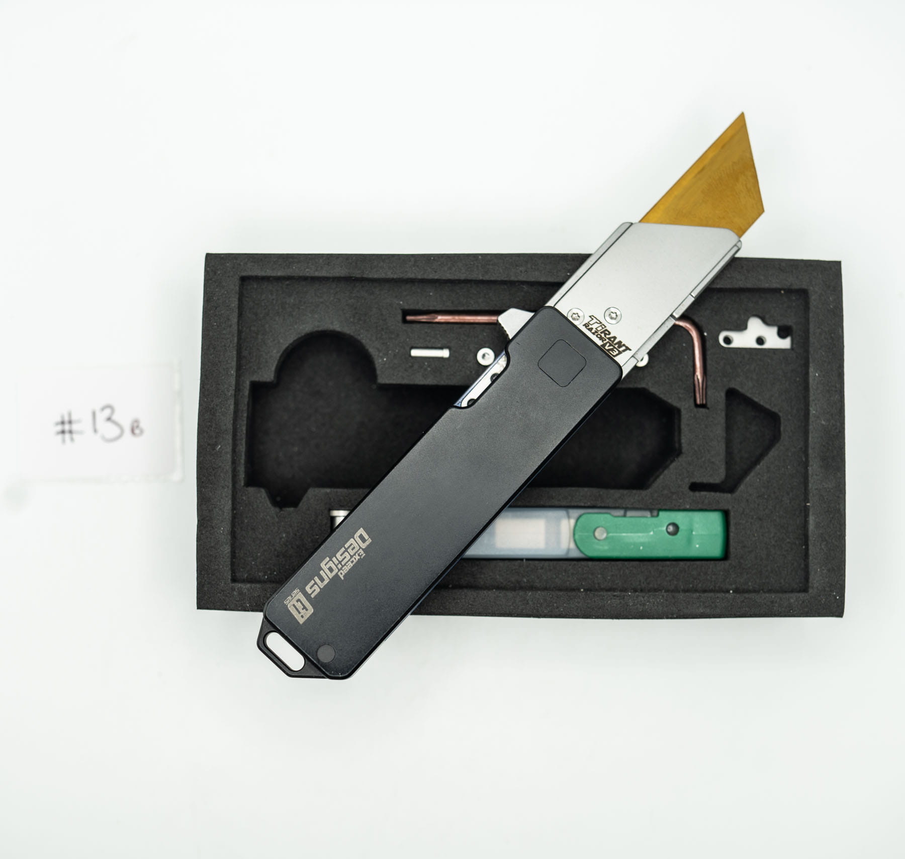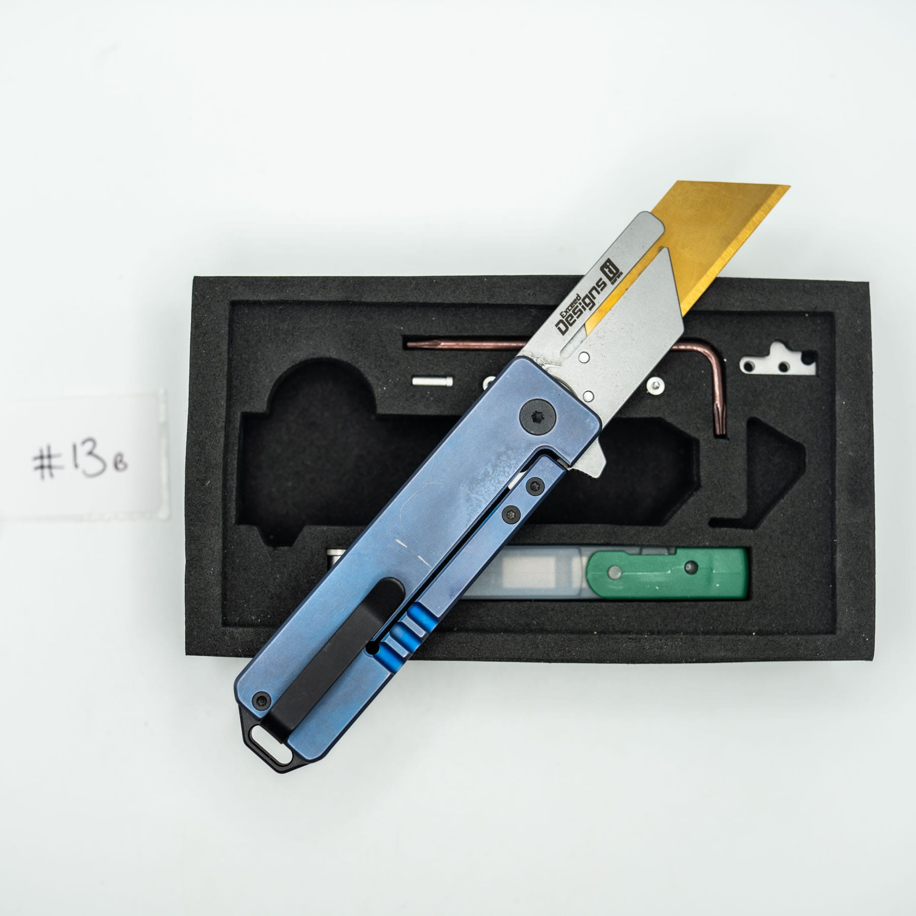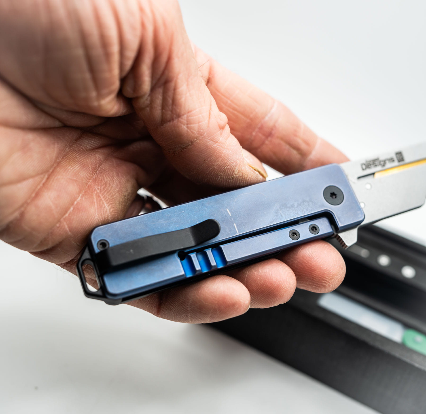ITEM #13B — TiRant RAZOR V3 Jet-Black RH Scale + Cobalt Blue Bronze ANO W/Jet-Black Mini Clip (6AL-4V Ti + Box Kit) 7/10 BLEM / CONTRAST — Only One Available