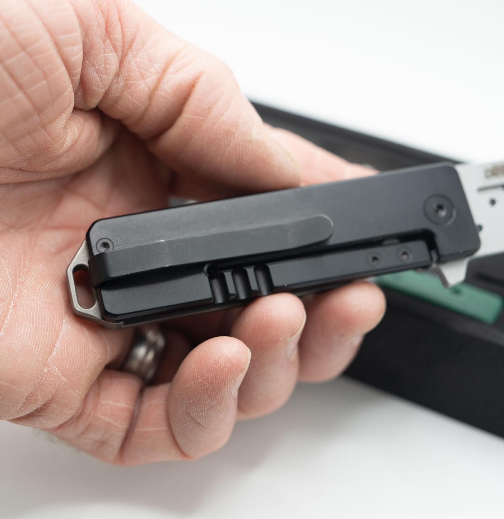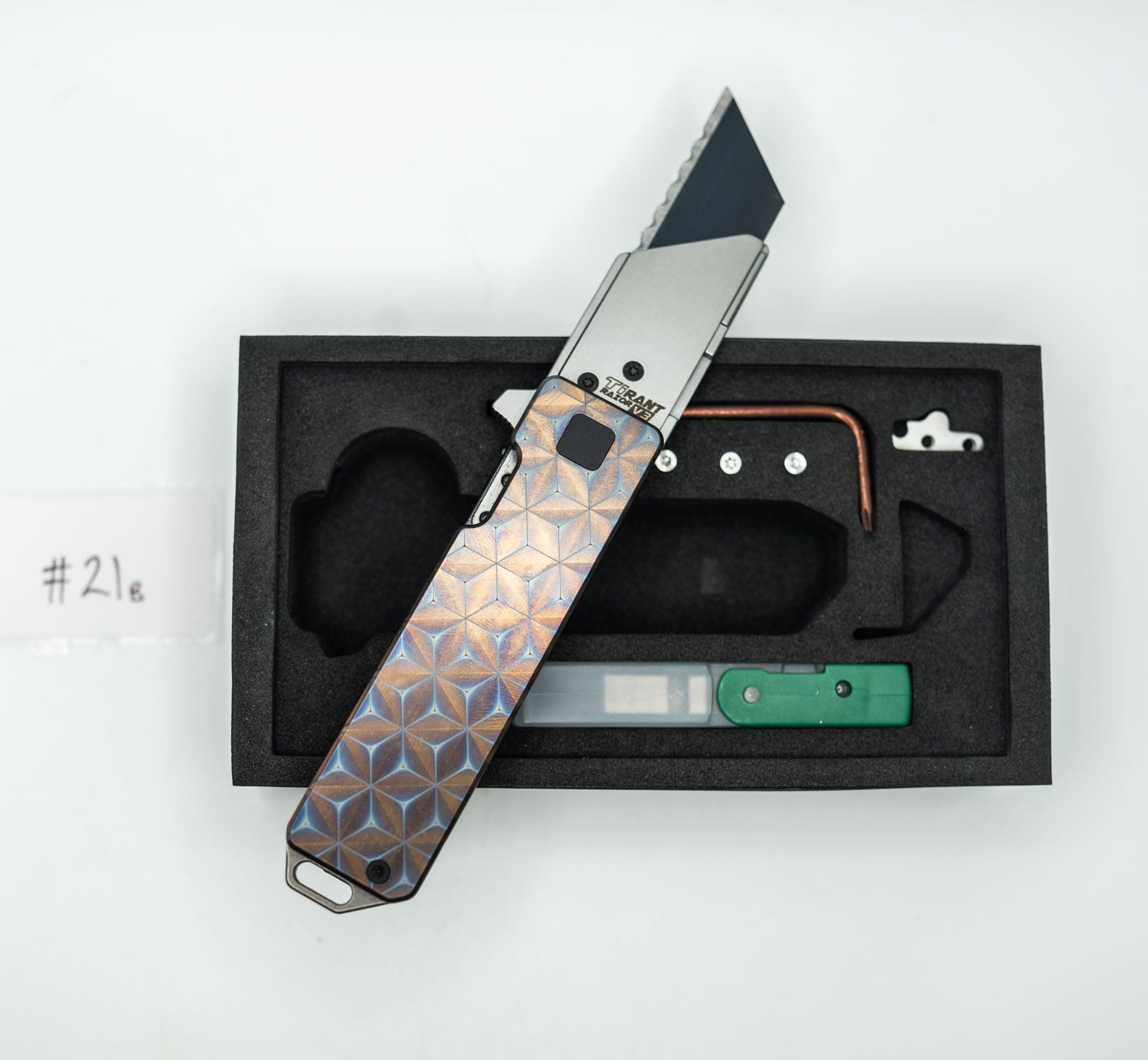 ITEM #21B — TiRant RAZOR V3 APEX FLARE RH Scale + Jet-Black LH Scale + W/Loop Rear Spacer + Jet-Black Hardware Kit Installed (6AL-4V Ti + Box Kit) 9/10 BLEM / RARE COMBO — Only One Available