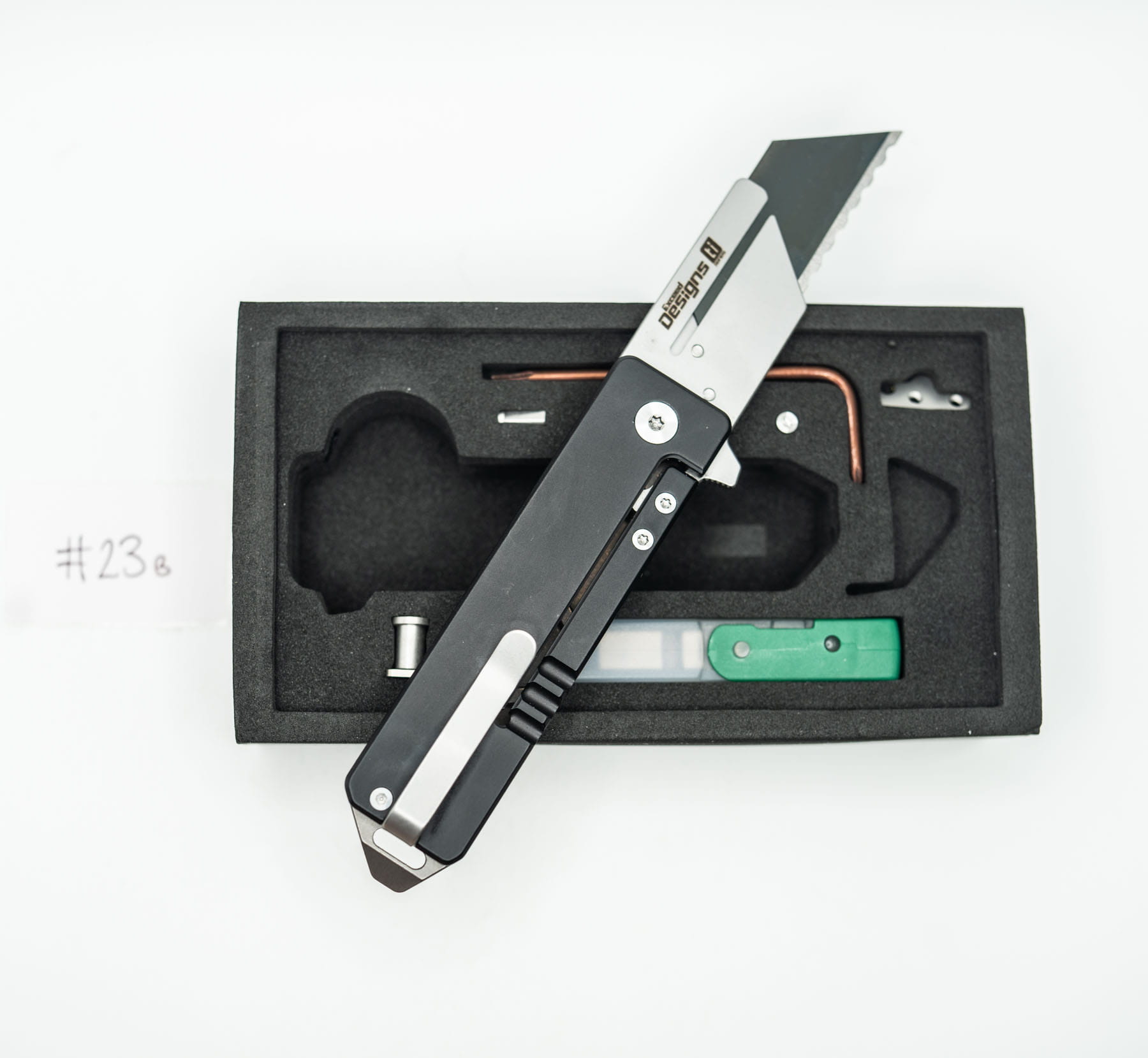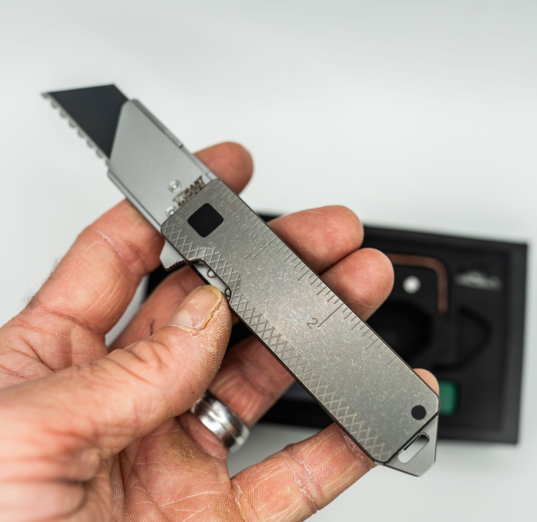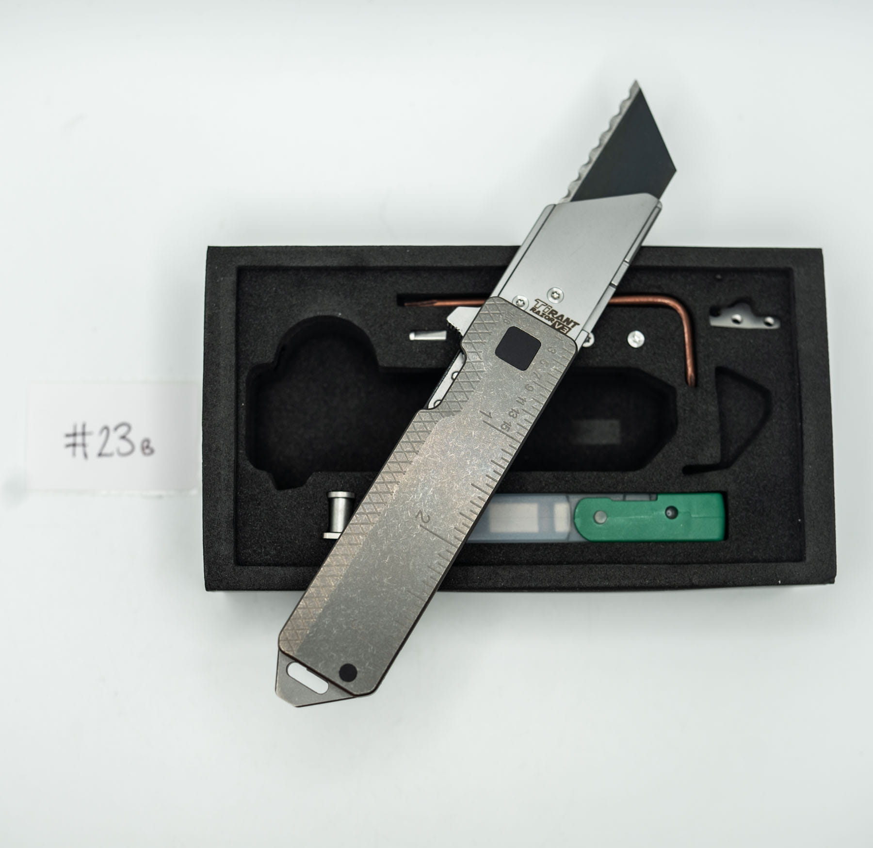 ITEM #23B — TiRant RAZOR V3 USA Milled Dark-Wash INCH Scale + Jet-Black LH Scale + Jet-Black Hardware + W/Pry Bar (6AL-4V Ti + Box Kit) 9/10 BLEM / RARE CONTRAST — Only One Available