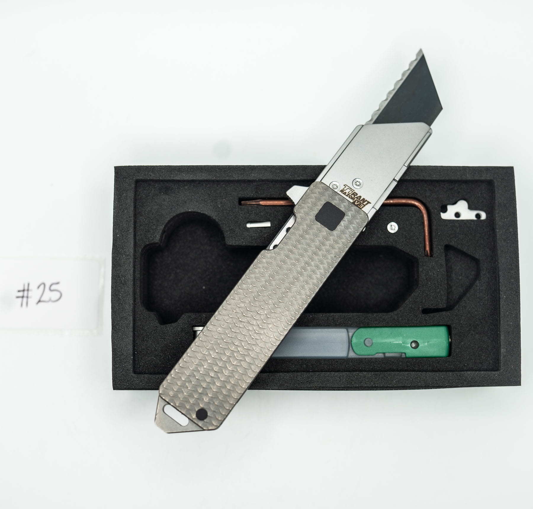 ITEM #25 — TiRant RAZOR V3 USA Milled Mini-Fish Grip RH Scale + Jet-Black LH Scale + Jet-Black Hardware + W/Pry Bar (6AL-4V Ti + Box Kit) 10/10 NEW / RARE MILLING — Only One Available