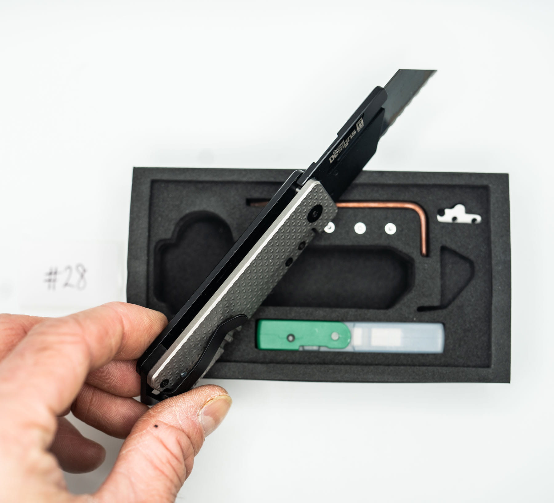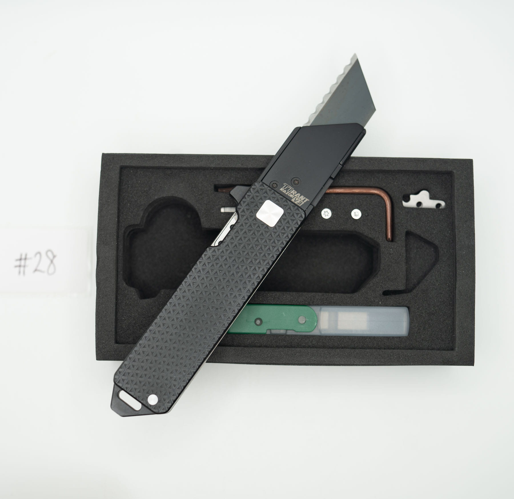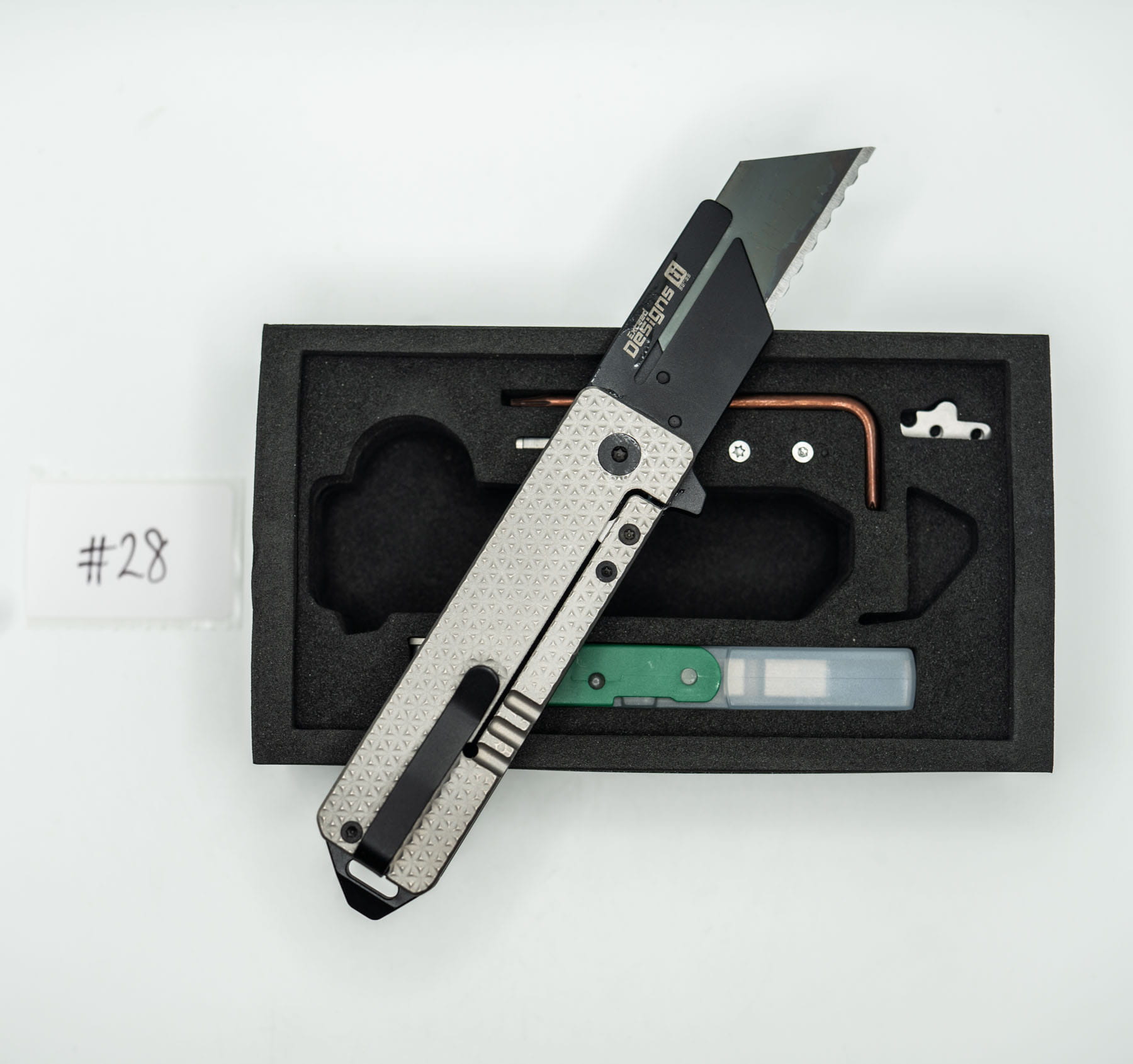 ITEM #28 — TiRant RAZOR V3 Stonewash APEX Milled LH + Jet-Black RH APEX Milled + Black/Silver Hardware Kit Installed + W/Pry Bar + W/Mini Clip (6AL-4V Ti + Box Kit) 10/10 NEW / RARE CONTRAST — Only One Available