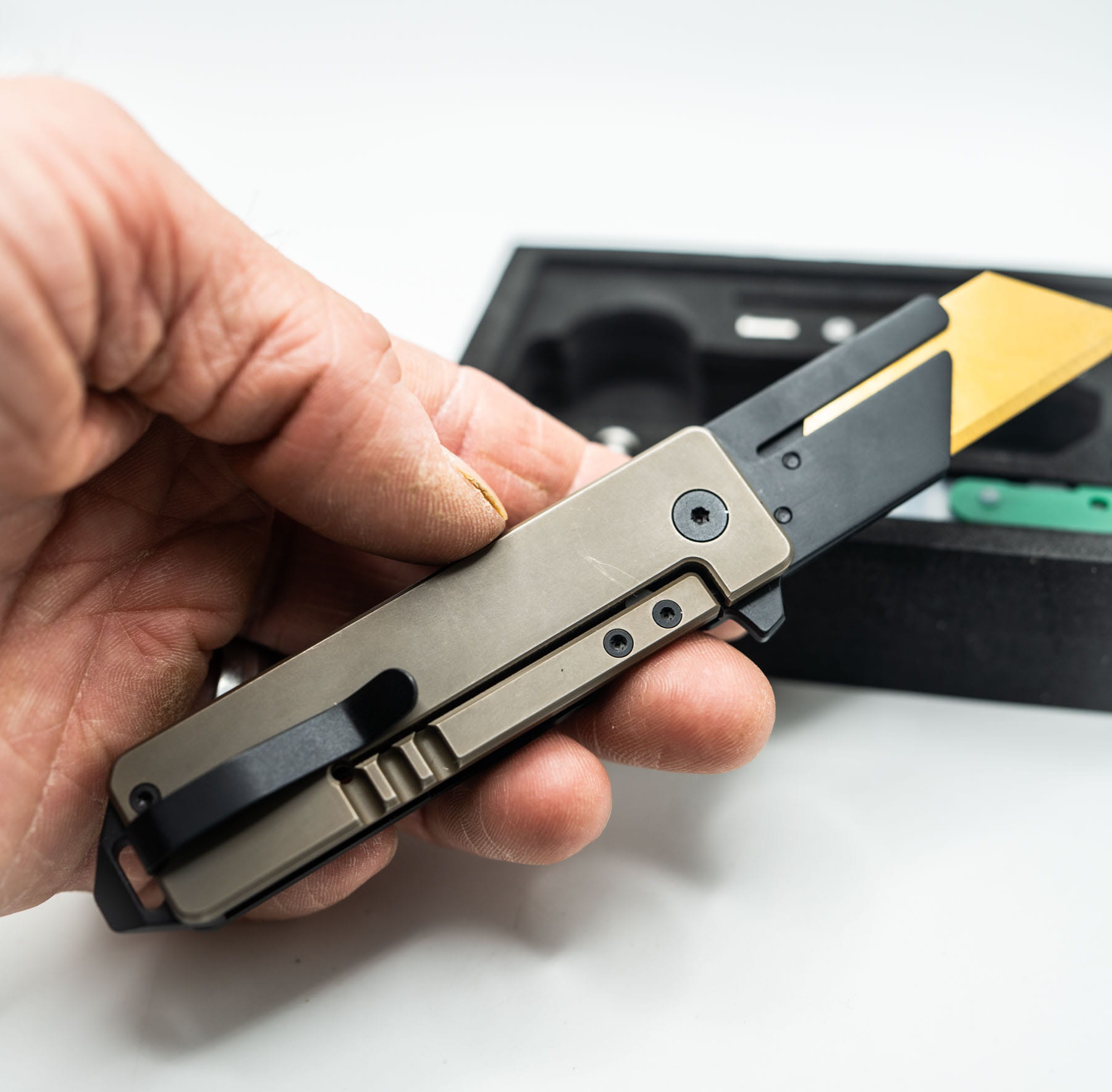 ITEM #9B — TiRant RAZOR V3 Jet-Black Skeleton RH Scale W/Bronze And LH Scale, Mini Clip + Pry Bar (6AL-4V Ti + Box Kit) 9/10 BLEM / RARE / Contrast Build — Only One Available