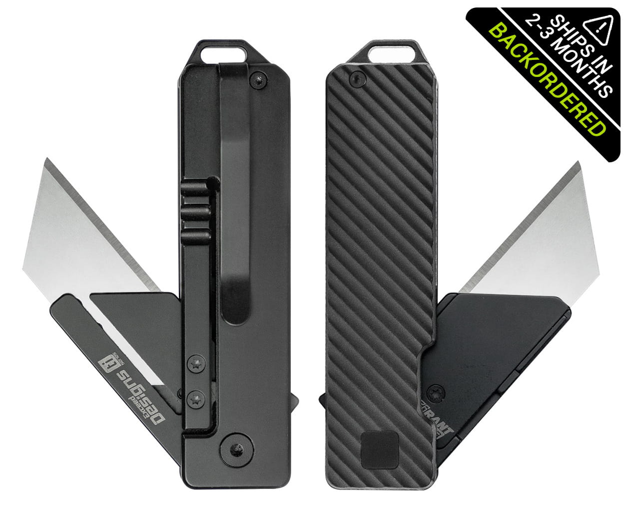 (Ships In 2-3 Months) TiRant® RAZOR V3 Utility Knife (50/50 Jet-Black + Carbon Fiber SLASH Edition)