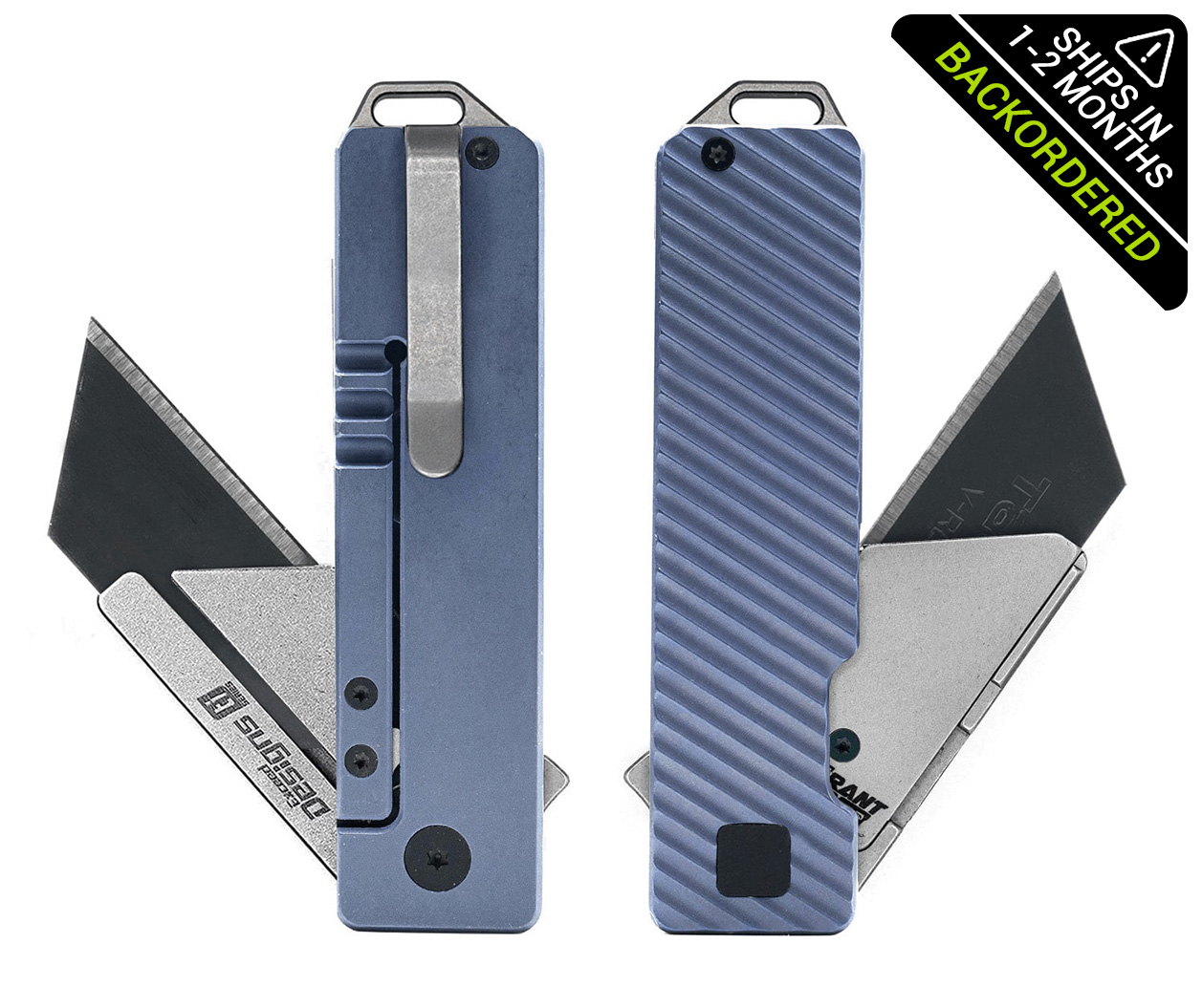 (SHIPS IN 1-2 MONTHS) TiRant® RAZOR V3 Utility Knife (Cobalt Blue ANO Ti WORKS + SLASH Edition + Stonewashed Blade Holder)