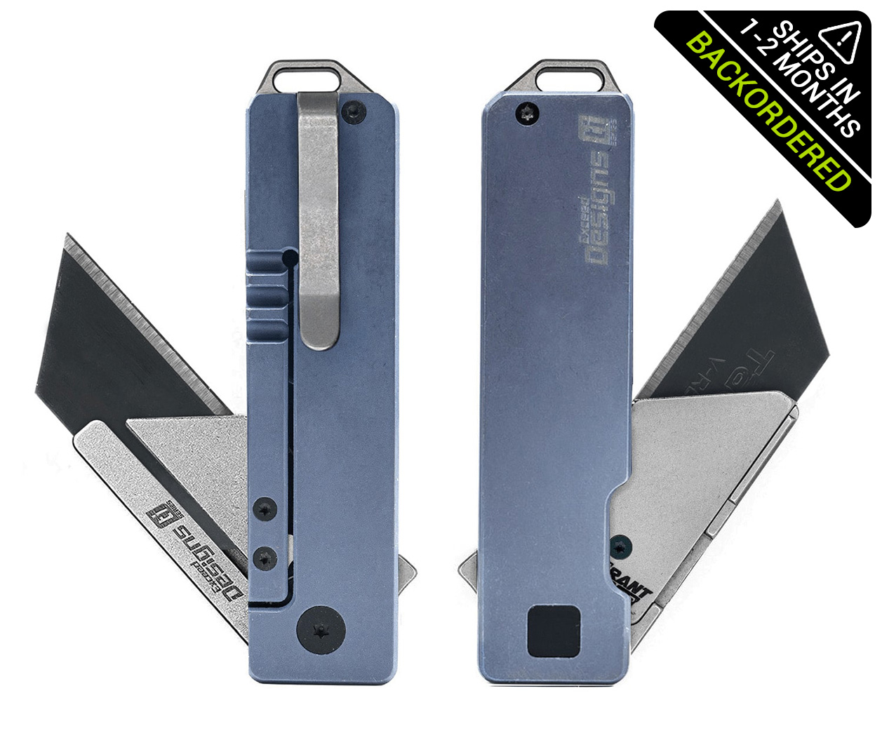 (SHIPS IN 1-2 MONTHS) TiRant® RAZOR V3 Utility Knife (Cobalt Blue ANO Ti WORKS Edition + Stonewashed Blade Holder)