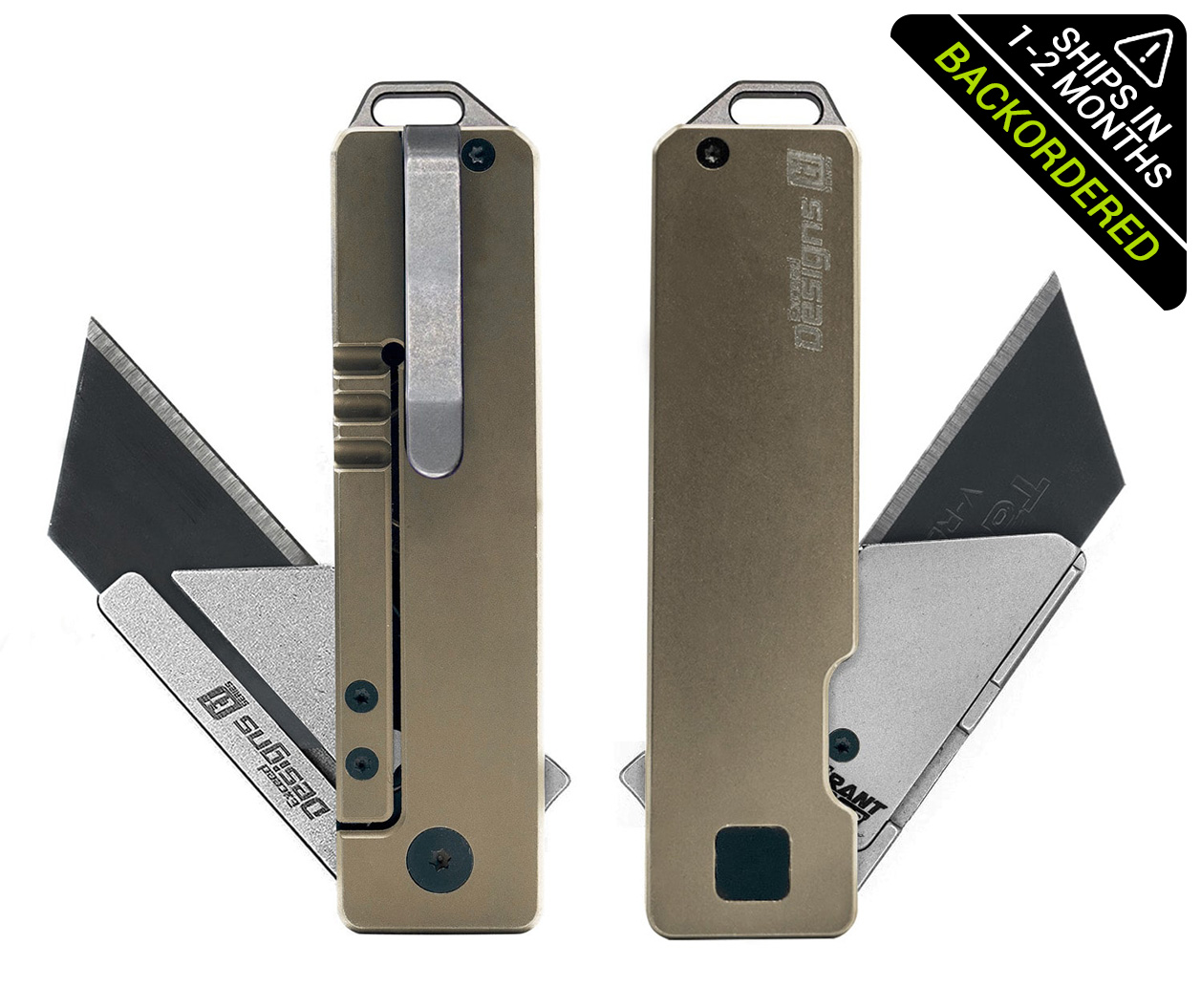 (SHIPS IN 1-2 MONTHS) TiRant® RAZOR V3 Utility Knife (Centurion Bronze ANO Ti WORKS Edition + Stonewashed Blade Holder)
