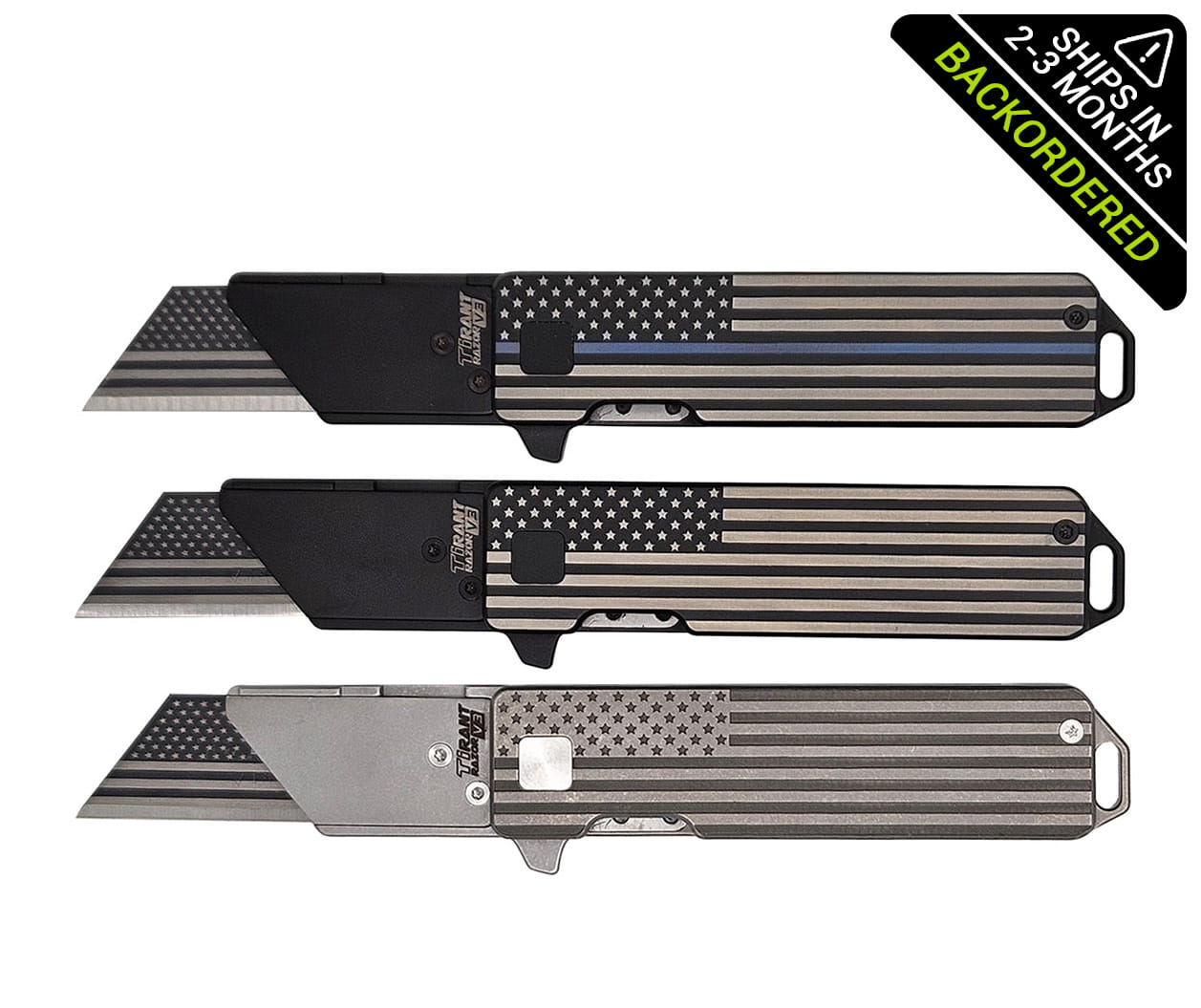 (Ships In 2-3 Months) TiRant RAZOR V3 Utility Knife (50/50 Jet-Black or Stonewashed + USA FLAG Edition)