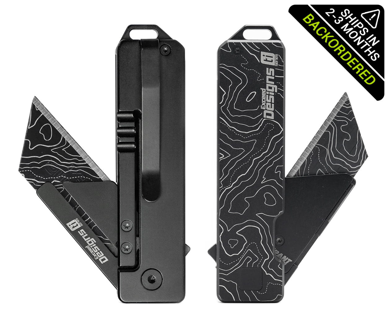 (Ships In 2-3 Months) TiRant® RAZOR V3 Utility Knife (50/50 Jet-Black + CASCADIA TOPO Edition)